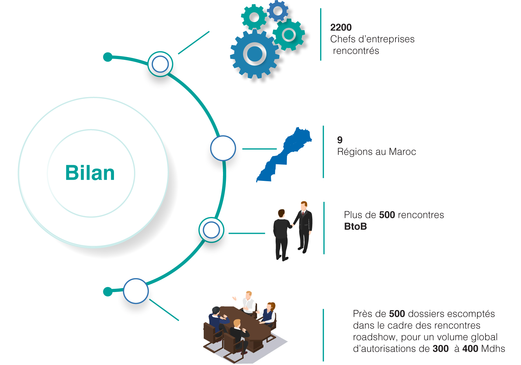 La Fédération du Commerce et Services en partenariat avec la FINEA, filiale du Groupe CDG, a lancé un Road show national destiné à promouvoir l’accès des Très Petites, Petites et Moyennes Entreprises (TPME) au financement et à la commande publique. Organisé de juin à juillet, ce roadshow a parcouru 9 villes et a permis de rencontrer 2200 TPMEs. Les experts de la FINEA ont été accompagnés par des représentants de la FCS et CGEM afin de favoriser la proximité de la Fédération auprès de ses membres.